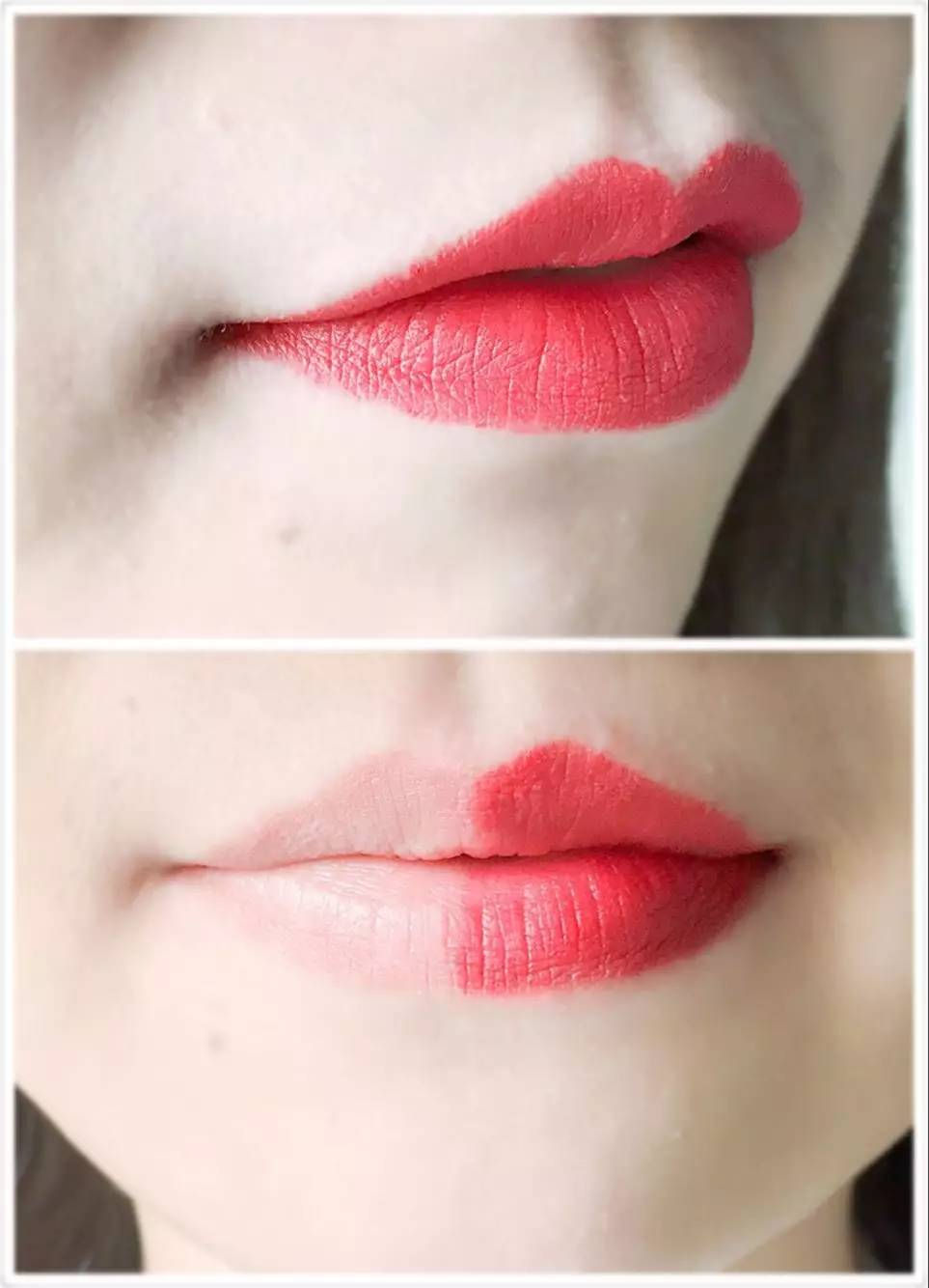 ตราวนี้มาลองทาลิปสติก MAC Matte Lip ฺBalm บนปากบ้าง จากนั้นก็ทำตาม step เดิมคือ หยด Hanajirushi Deep Cleansing Lotion ลงบนสำลีกดทับไว้สัก 2-3 วินาทีแล้วเช็ดออก ปรากฏว่ายังเหลือคราบลิปสติกติดอยู่เล็กน้อย กลับสำลีเอาด้านหลังเช็ดอีกรอบ ลิปสติกก็ออกหมดจด